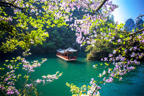 这并非特意安排的专场演出。在宝峰湖,山歌本就是山水的一部分。撑船的师傅告诉记者,天气晴好的日子,湖上的山歌船便会出来,歌手大多是周边的土家儿女,“唱了几辈人了,游客爱听,我们也爱唱”。