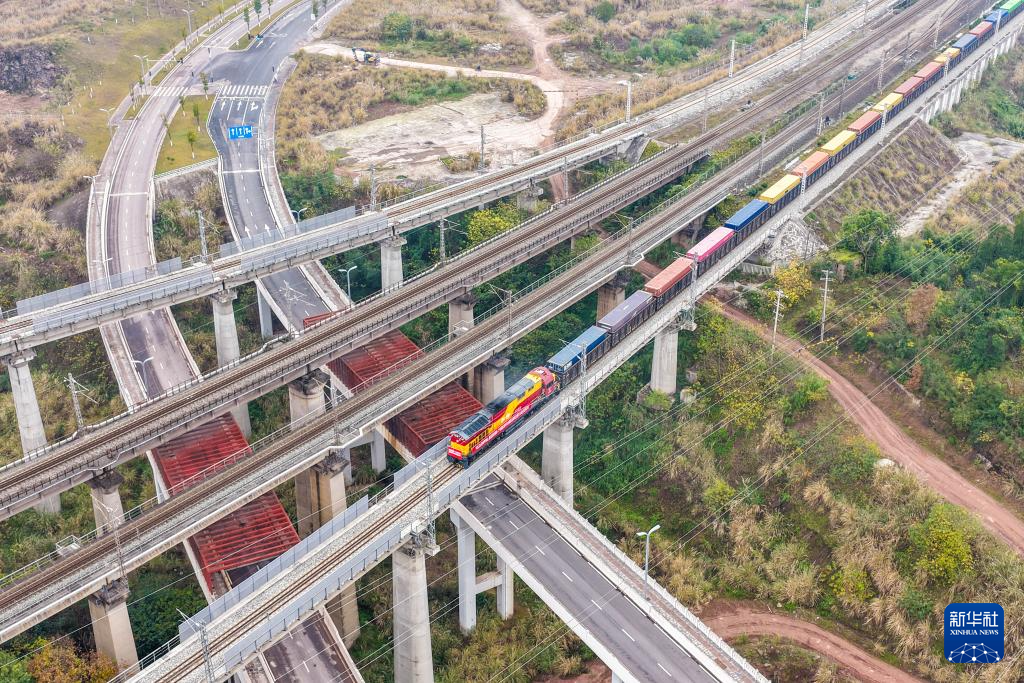 1月7日,一列满载108台“重庆造”新能源汽车的铁海联运专列,从重庆果园港鱼嘴站发出,预计在48小时后抵达广州南沙港,随后换装海轮运往中东市场。