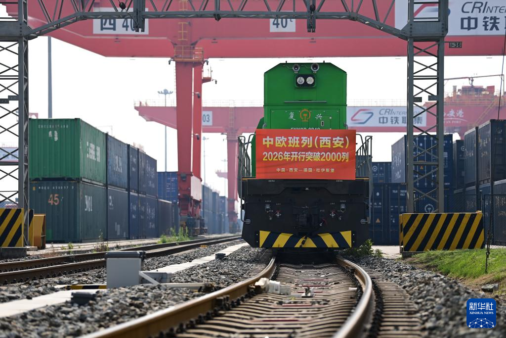 4月24日,满载汽车配件、新能源材料等货物的X8151次中欧班列从西安国际港站驶出,开往德国杜伊斯堡,标志着中欧班列(西安)2026年开行突破2000列,累计运送货物超210万吨。